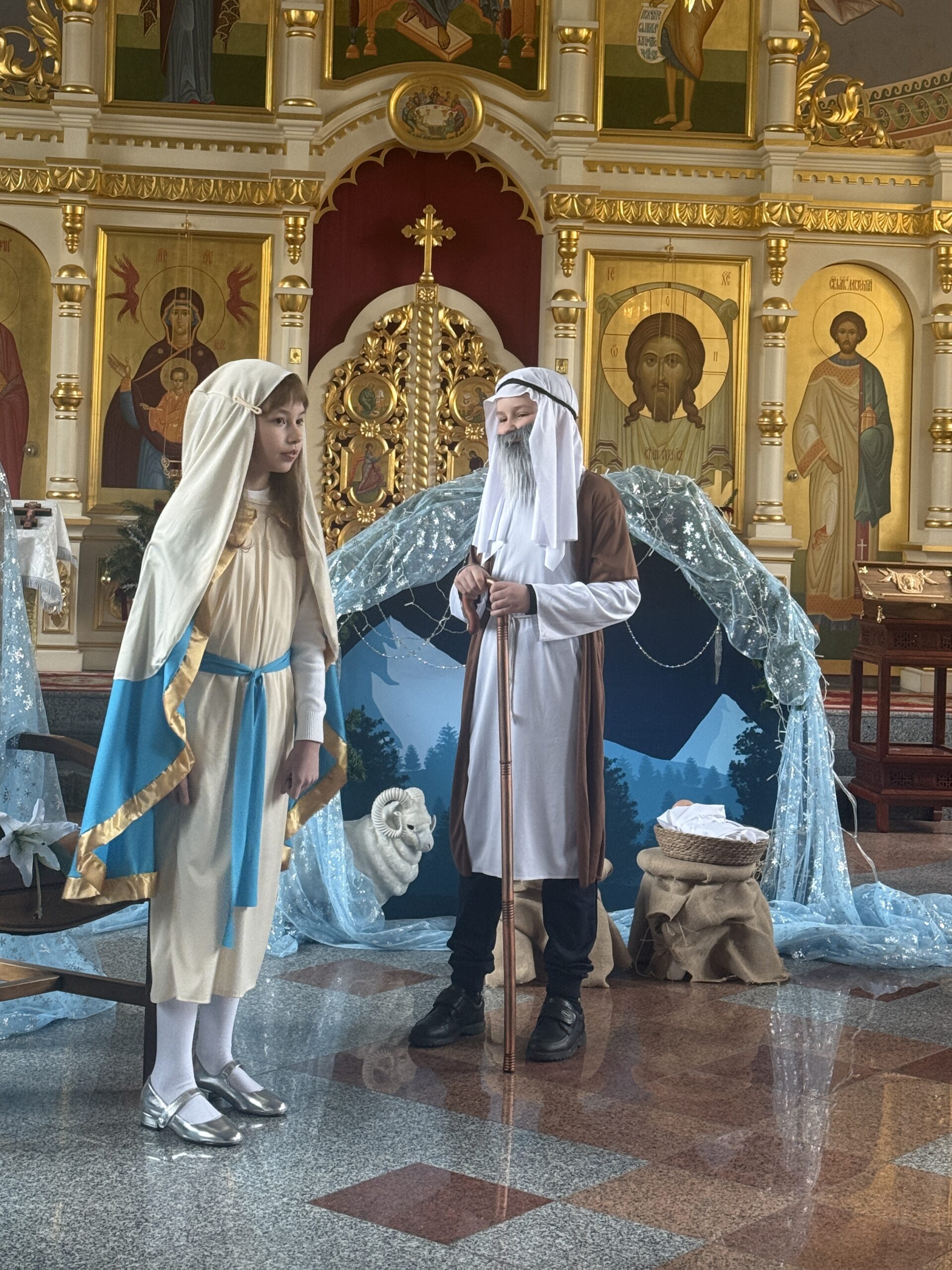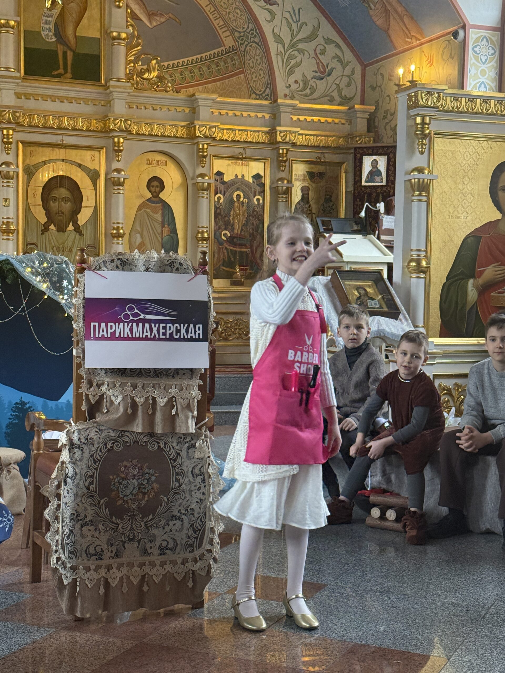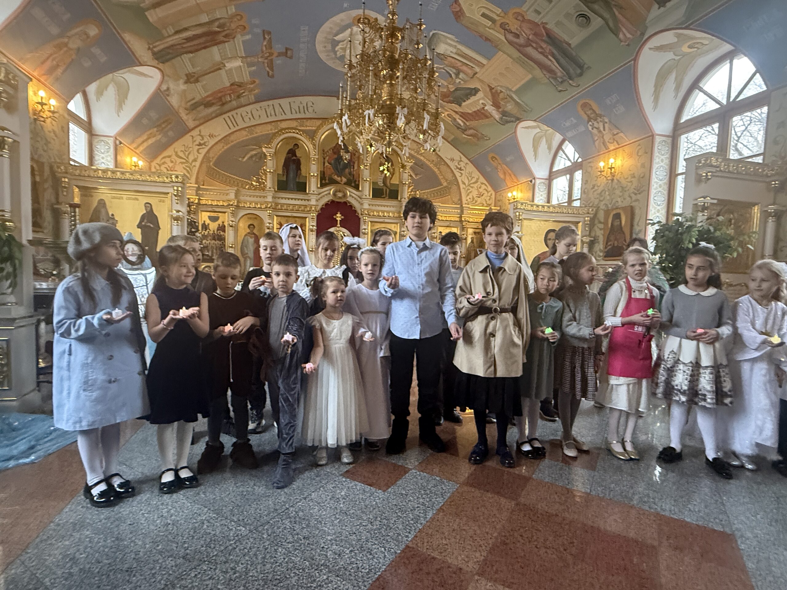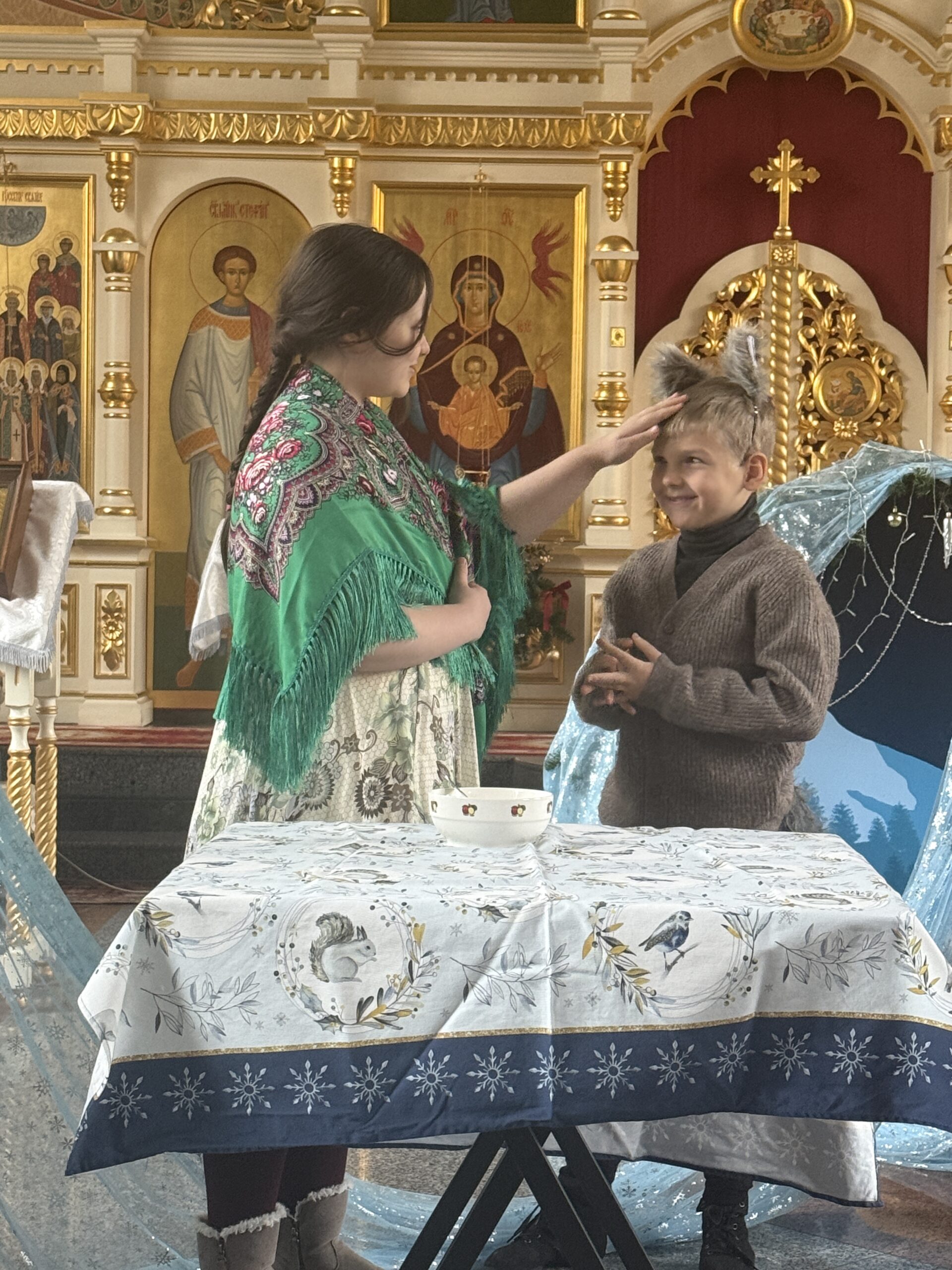 Учащиеся воскресной школы совместно с учителями подготовили небольшой концерт с Рождественскими песнопениями и стихами, а также представили вниманию зрителей три театральные миниатюры с тематикой Рождества. После концерта состоялось совместное чаепитие. Все присутствовавшие на празднике дети — как выступавшие, так и среди числа зрителей — традиционно получили сладкие подарки от настоятеля храма.