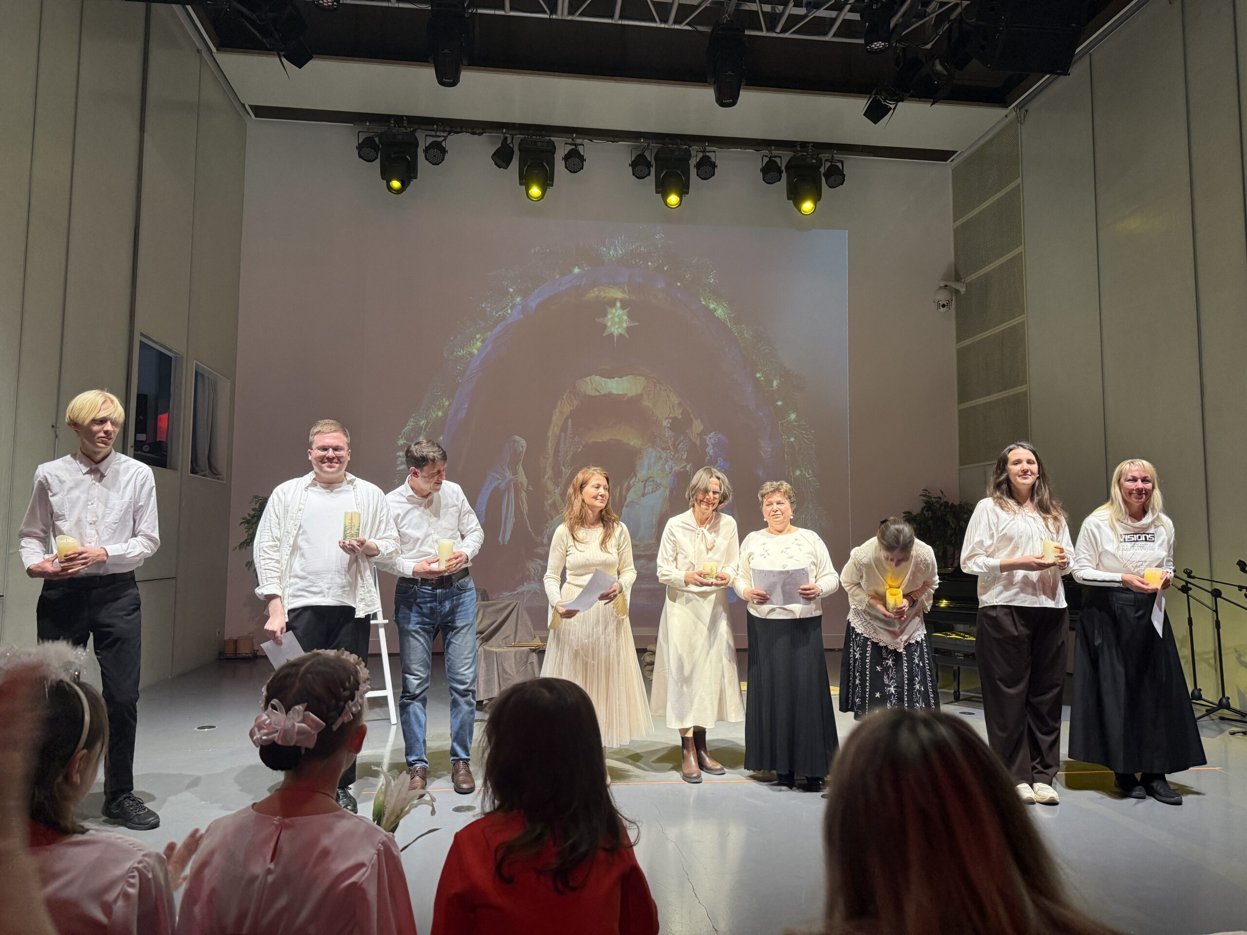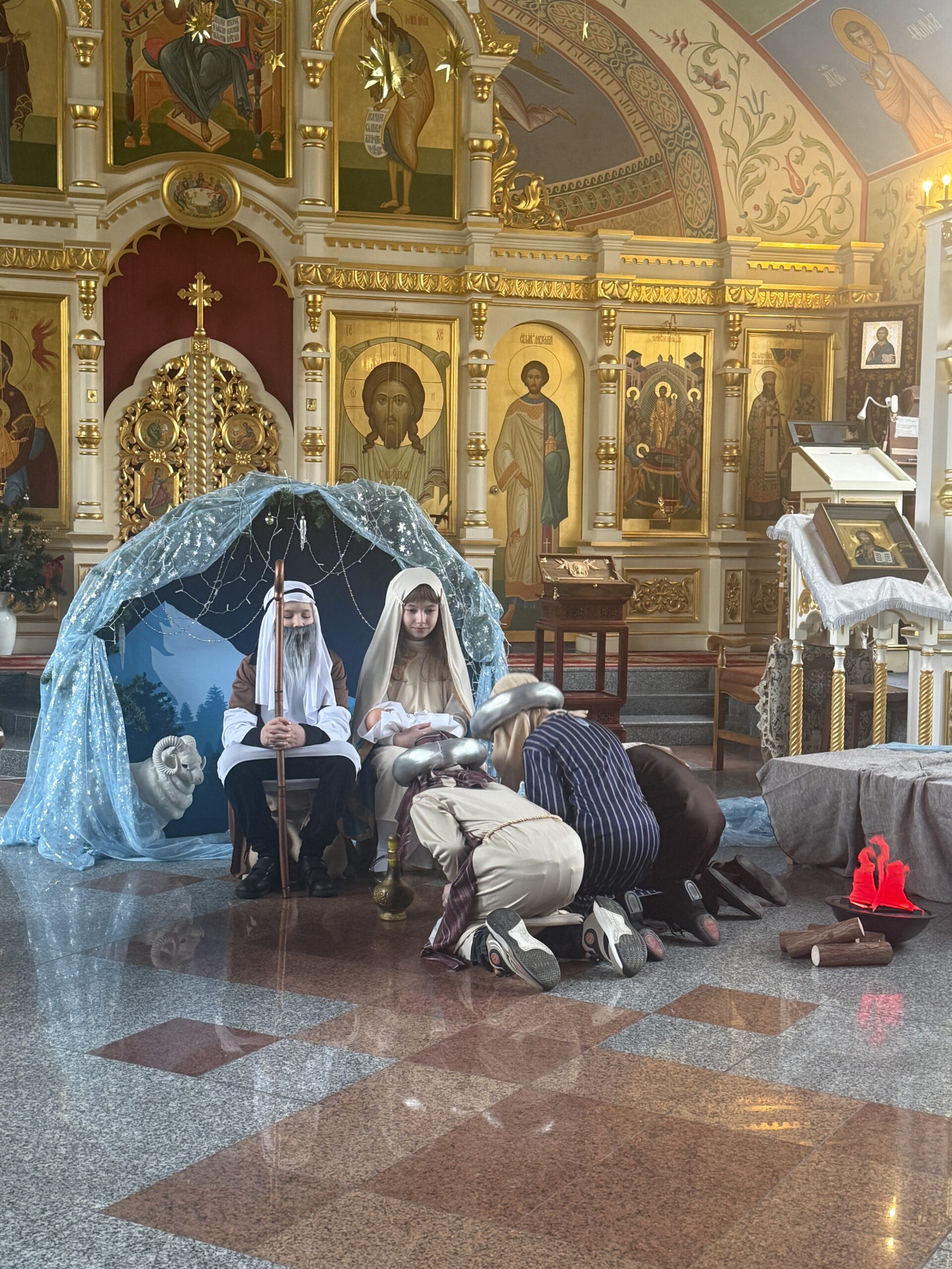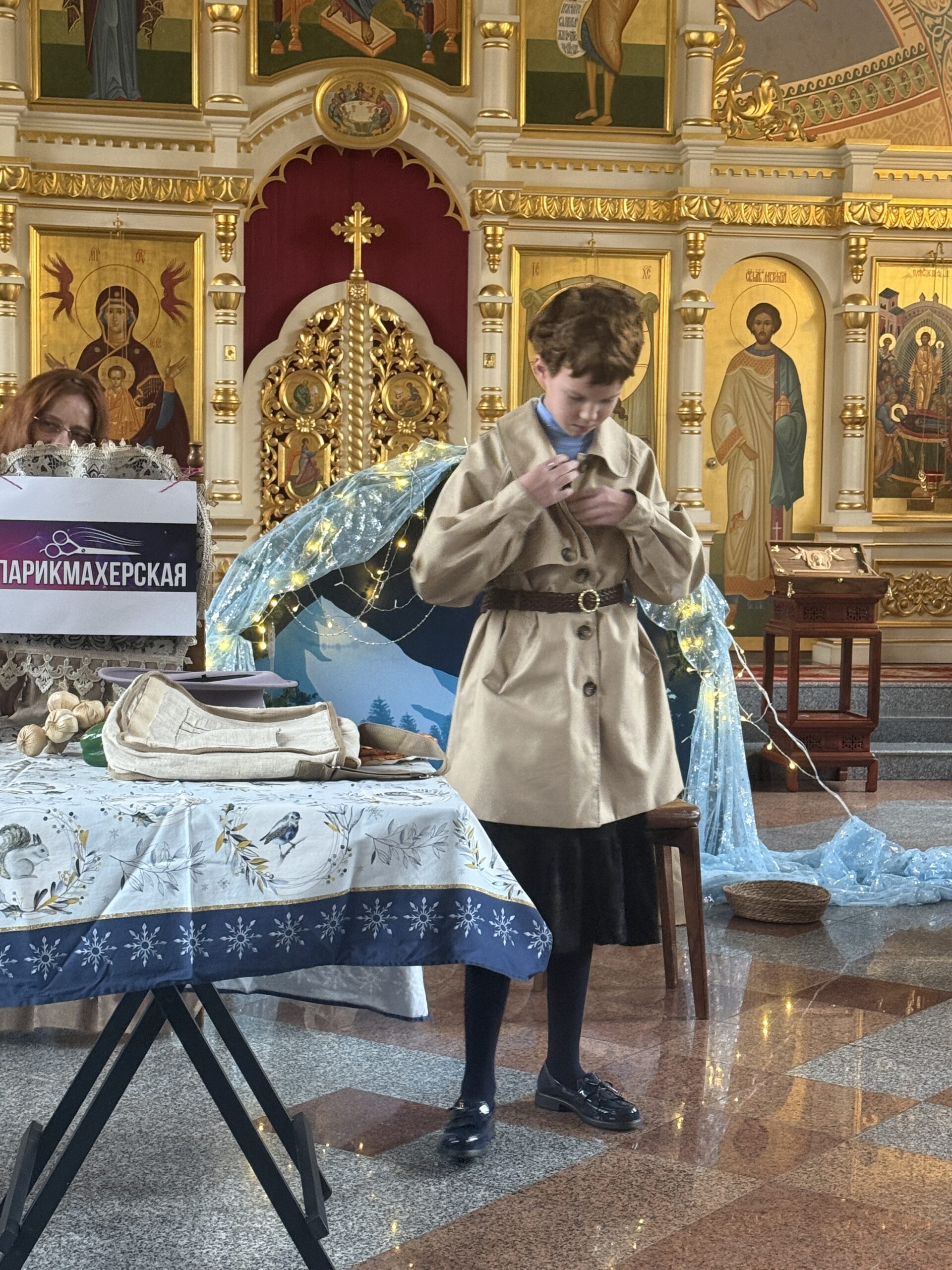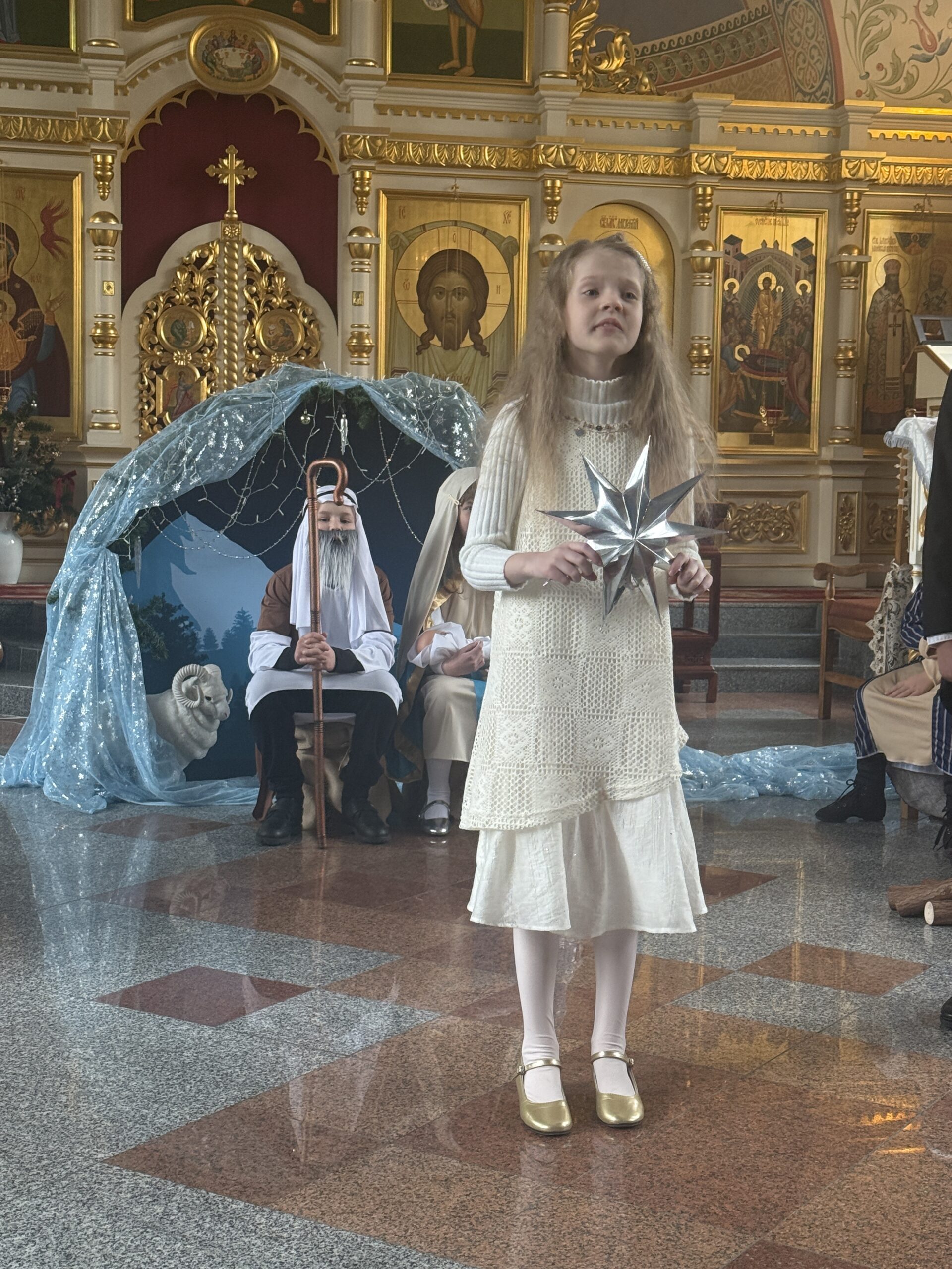 Учащиеся воскресной школы совместно с учителями подготовили небольшой концерт с Рождественскими песнопениями и стихами, а также представили вниманию зрителей три театральные миниатюры с тематикой Рождества. После концерта состоялось совместное чаепитие. Все присутствовавшие на празднике дети — как выступавшие, так и среди числа зрителей — традиционно получили сладкие подарки от настоятеля храма.